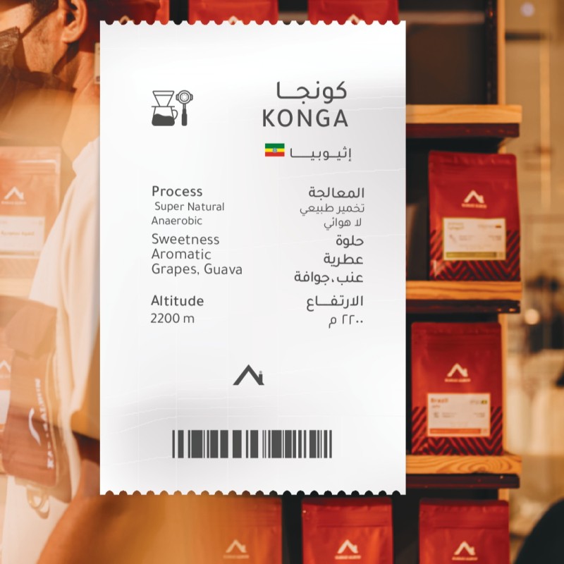 محصول إثيوبيا كونجا – تخمير طبيعي لا هوائيتتميز بمعالجة تخمير طبيعي لا هوائي تمنحها توازناً فريداً بين الحلاوة والعطرية، مع إيحاءات عنب وجوافة تعبق بالنضج والانتعاش.